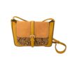 Γυναικεία Τσάντα από τεχνόδερμα χρώμα μουσταρδί με λεπτομέρειες Animal print και Suede. Κλείσιμο με μαγνήτη και φερμουάρ.